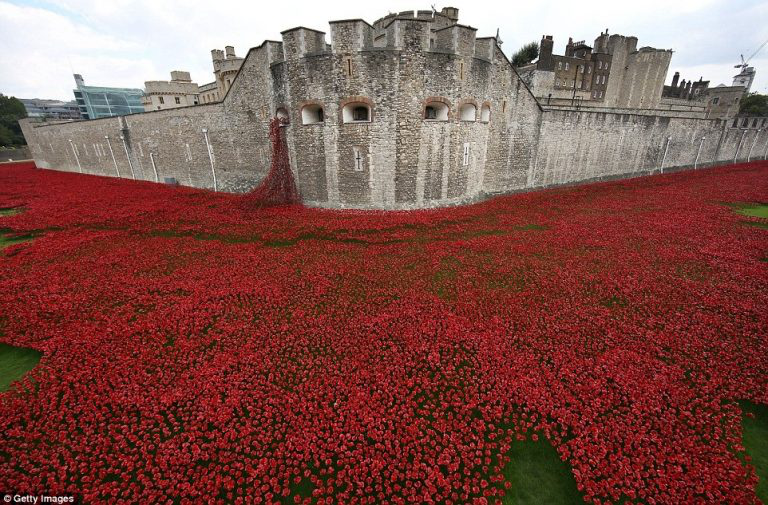 Paul Cummins et Tom Pipper, The tower poppies, 2014, œuvre commémorative pour le bicentenaire de la 1ère guerre mondiale